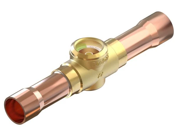 Made of brass, this Danfoss SGP22SN sight glass with 7/8″ solder connections is for installation after the filter drier in the liquid line of a refrigerating system and in the compressor, using socket type. The sight glass allows users to observe property changes in liquid or vapour refrigerant and uses colour to indicate moisture level.Large viewing window for improved visibility;SGP N for non-flammable HFC refrigerants;Indicates high moisture content in the refrigeration system;Indicates lack of subcooling or refrigerant deficiency;High precision colour indicator;Provides accurate identification of system conditions;Easy to read liquid and oil level via float ball;Corrosion-resistant to 2000hrs salt spray, meeting ASTM B117 requirement for brass material;Ambient temperature -50 to +80°C;Maximum working pressure ps/mwp, 52bar;UL approval;Complies to pressure equipment directive 2014/68/EU