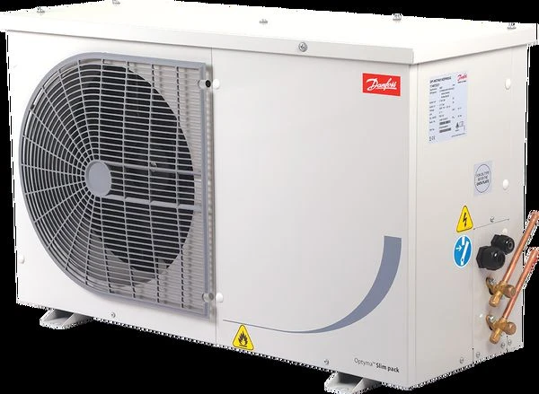 Future-proof your cooling system with the Danfoss Optyma single phase Slim Pack multi-refrigerant condensing unit, a reliable choice offering excellent levels of energy efficiency, sustainability and compliance. Slimline for ease of installation in any location, this smartly designed unit also offers straightforward maintenance. Making the transition to ultra-low GWP refrigerants simple, Optyma units are A2L-ready for risk-free, eco-friendly cooling.Slimline dimensions for easy fit in smaller spacesHigh efficiency design for reduced energy consumption and costReduces indirect emissionsSuitable for transition to A2LOffers safe maintenanceFor safe and reliable operationFast, easy installation and serviceLighter weight makes handling easyOperates quietly with noise levels down to 75dbA